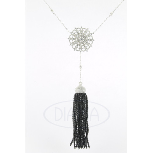 Срібне кольє з чорним та білим цирконом. Срібло 925 проби, покрите родієм.
