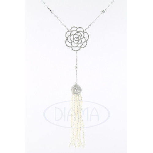 Срібне кольє з перлинами та білим цирконом. Срібло 925 проби, покрите родієм.