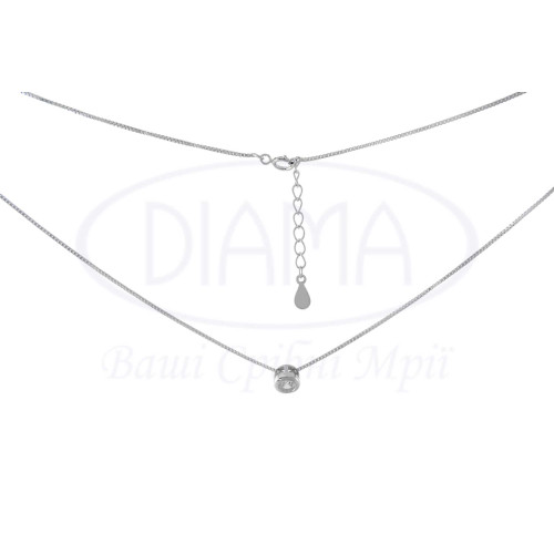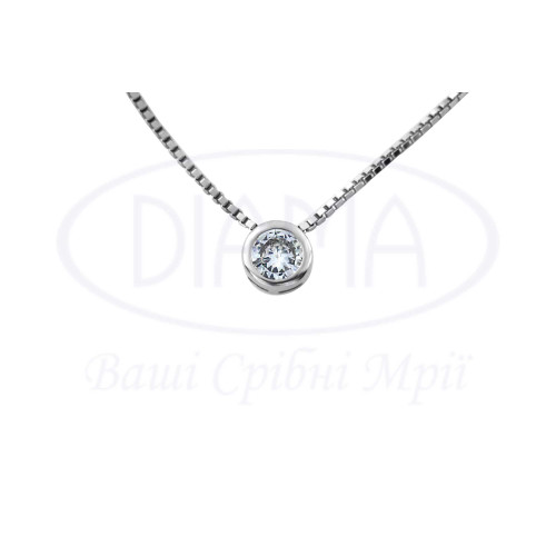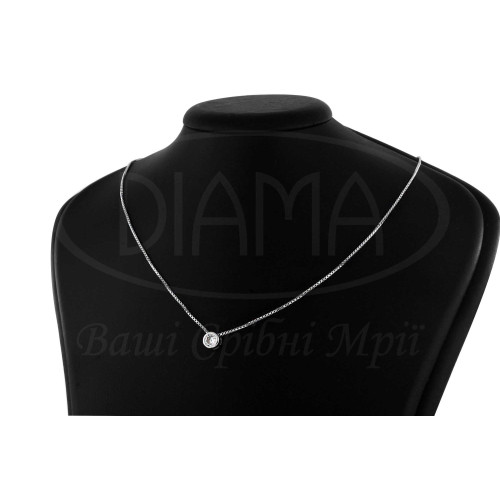 Срібне кольє з цирконом по центру. Срібло 925 проби, покрите родієм. Розмір головного елементу 6 мм.