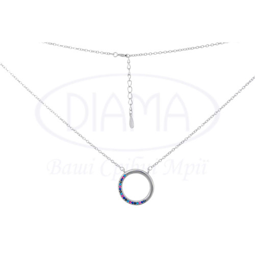 Кольє срібне Коло з кольоровим цирконом. Срібло 925 проби, покрите родієм. Діаметр кола 19 мм, товщина 2,5 мм..