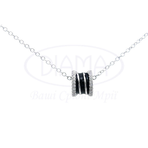Кольє срібне з білим цирконом та чорною емаллю. Срібло 925 проби, покрите родієм.