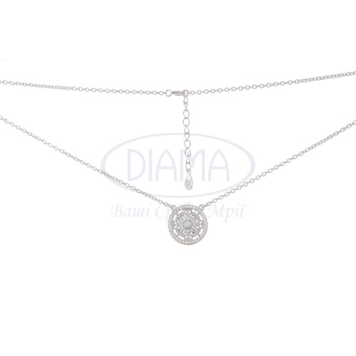 Кольє срібне в формі кола з візерунками, оздоблене цирконом. Срібло 925 проби, покрите родієм.