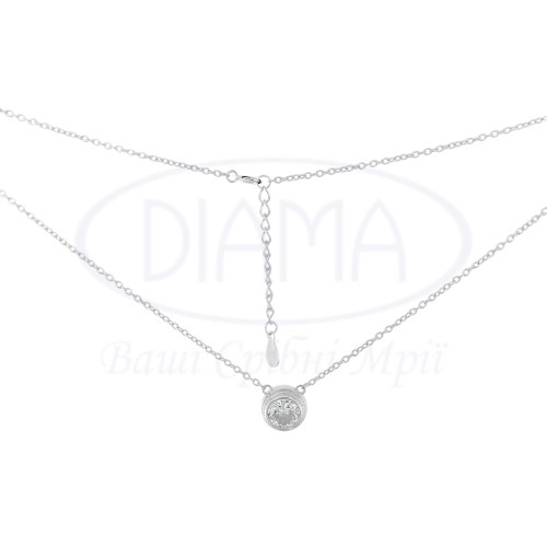 Срібне кольє з великим цирконом по центру. Срібло 925 проби, покрите родієм. Розмір головного елементу 10 мм.