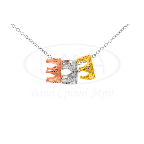 Кольє срібне "Три Корони". Срібло 925 проби, покрите родієм, жовтою та червоною позолотою
