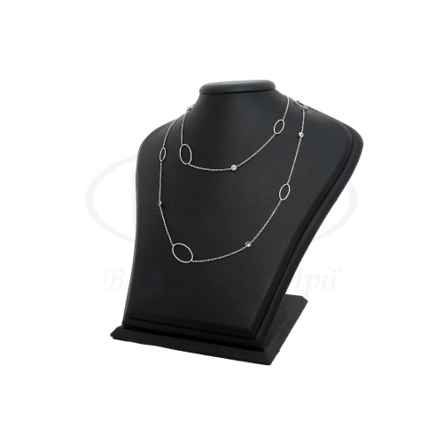 Кольє срібне з овальними фігурками та білим цирконом. Срібло 925 проби, покрите родієм.
