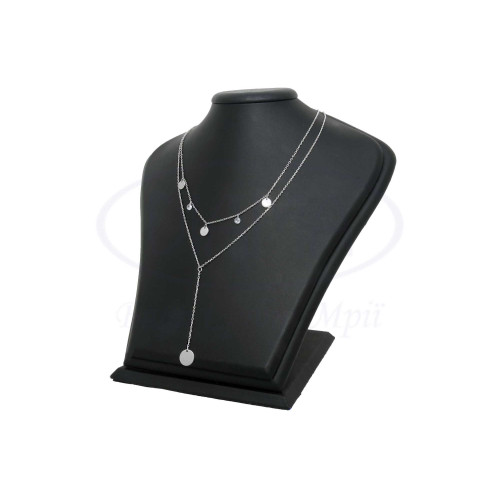 Кольє срібне з круглими пластинками та білим цирконом. Срібло 925 проби, покрите родієм.