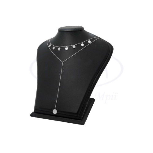 Срібне кольє з круглими пластинками. Срібло 925 проби, покрите родієм.