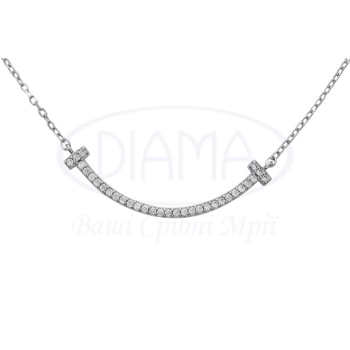 Кольє срібне з білим цирконом. Срібло 925 проби, покрите родієм. Розмір головного елементу 43 мм.