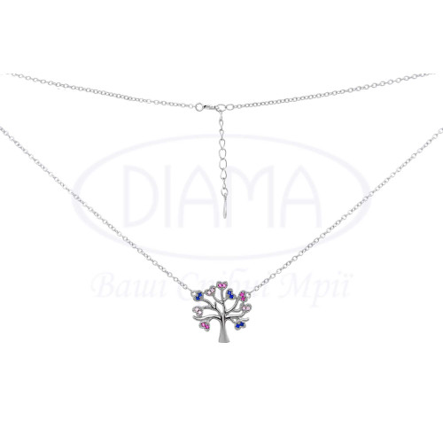 Кольє срібне з підвіскою у формі дерева та різнокольоровим цирконом. Срібло 925 проби, покрите родієм.