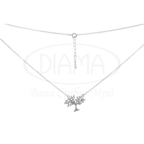 Кольє срібне з підвіскою у формі дерева та білим цирконом. Срібло 925 проби, покрите родієм.