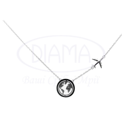 Срібне кольє в формі Планети та Літака. Срібло 925 проби, покрите родієм. Розмір 18,5 мм.