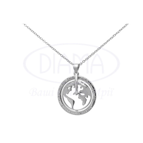 Срібне кольє з білим цирконом в формі Планети та Літака і написом "YOU ME AN THE WORLD TO ME" (ТИ ДЛЯ МЕНЕ - ЦІЛИЙ СВІТ). Срібло 925 проби, покрите родієм. Розмір 25 мм.