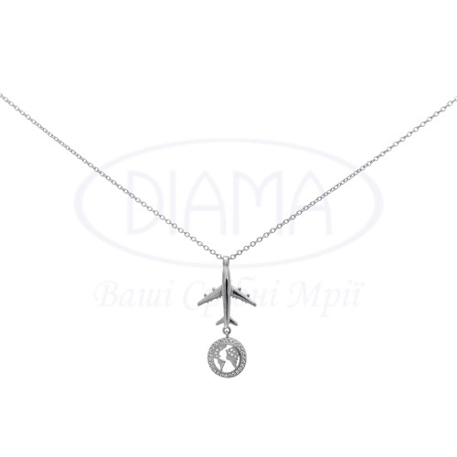 Срібне кольє з білим цирконом в формі Планети та Літака. Срібло 925 проби, покрите родієм. Розмір 12 мм.