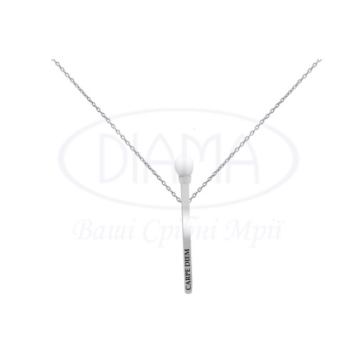 Срібне кольє в формі Сірника з білим цирконом. Срібло 925 проби, покрите родієм. Розмір головного елементу 47,5*3*7мм.