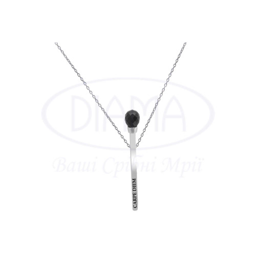 Кольє срібне в формі Сірника з чорним цирконом. Срібло 925 проби, покрите родієм. Розмір головного елементу 47,5*3*7мм.