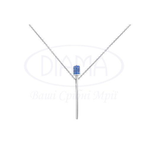 Срібне кольє в формі Сірника з синім цирконом. Срібло 925 проби, покрите родієм.