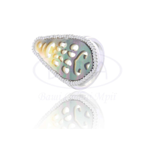 Каблучка срібна 925 проби з чорним перламутром, покрита родієм. В наборі також присутні Сережки і Підвіска.