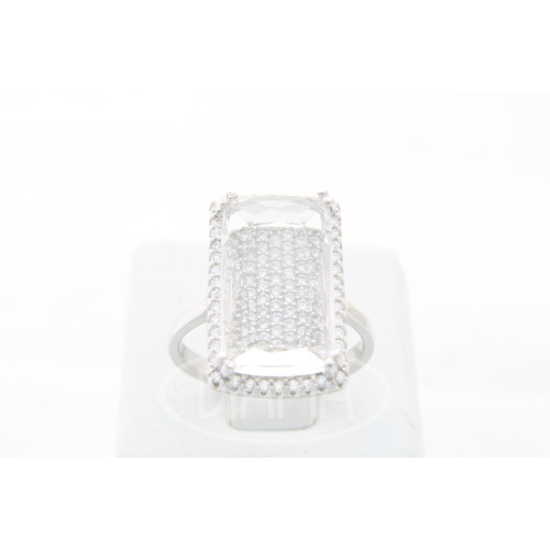 Каблучка срібна 925 проби, оздоблена білим цирконом та покрита родієм. Під великим цирконом білого кольору знаходиться усипка з маленьких каменів. В наборі присутні також сережки.
