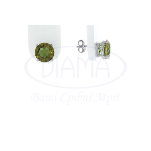 Сережки срібні з султанітом у формі круга, у якому властиво змінювати відтінок при різному освітленні до зеленого, жовтого, малинового або яскраво помаранчевого. Срібло 925 проби, покрите родієм. Розмір сережки 8 мм.