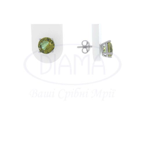 Сережки срібні з султанітом у формі круга, у якому властиво змінювати відтінок при різному освітленні до зеленого, жовтого, малинового або яскраво помаранчевого. Срібло 925 проби, покрите родієм. Розмір сережки 7 мм.
