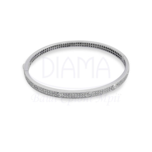 Срібний браслет в стилі Картьє (Cartier) з білим цирконом. Срібло 925 проби, покрите родієм. Ширина 4 мм