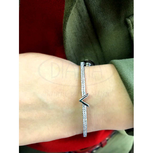 Срібний браслет з білим цирконом. Срібло 925 проби, покрите родієм. В наборі присутні браслет та каблучка.