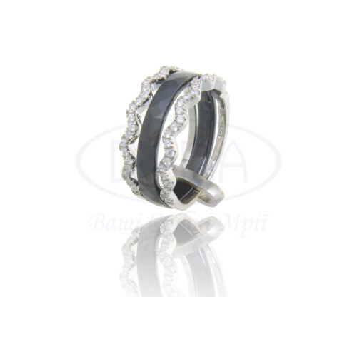 Срібна каблучка з чорною граненою керамікою та білим цирконом. Срібло 925 проби, покрите родієм.