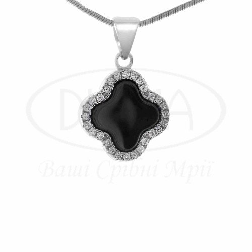 Підвіска срібна з чорною керамікою та білим цирконом у формі "Клевер". Срібло 925 проби, покрите родієм. Комплект складається з каблучки, підвіски та сережок.