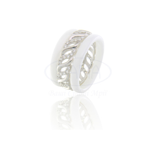 Каблучка срібна з білою ювелірною керамікою і білим цирконом. Срібло 925 проби, покрите родієм.