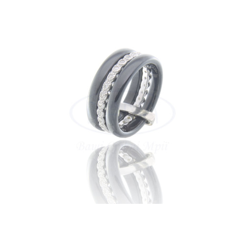 Каблучка срібна з чорною керамікою та білим цирконом. Срібло 925 проби, покрите родієм.