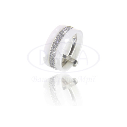 Каблучка з білої граненої кераміки зі сріблом. Вставка - циркон білий. Срібло 925 проби, покрите родієм.