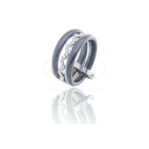 Каблучка срібна з чорною ювелірною керамікою і билим цирконом. Срібло 925 проби, покрите родієм.