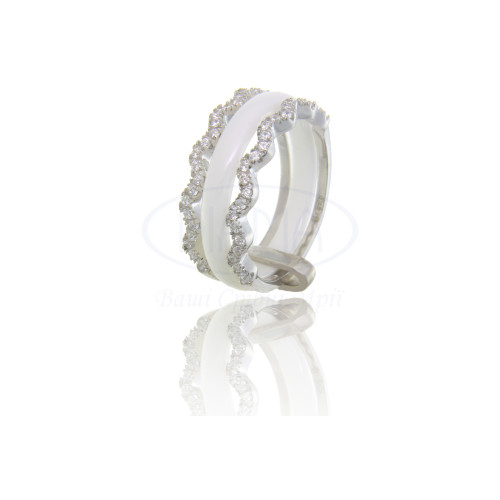 Каблучка срібна з білою керамікою та білим цирконом. Срібло 925 проби, покрите родієм.