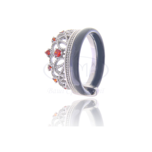 Каблучка срібна Корона з помаранчевим цирконом та чорною керамікою. Срібло 925 проби, покрите родієм.