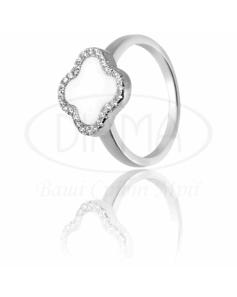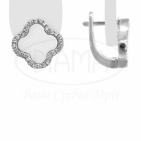 Каблучка срібна з білою керамікою та білим цирконом у формі "Клевер". Срібло 925 проби, покрите родієм. Комплект складається з каблучки, підвіски та сережок.