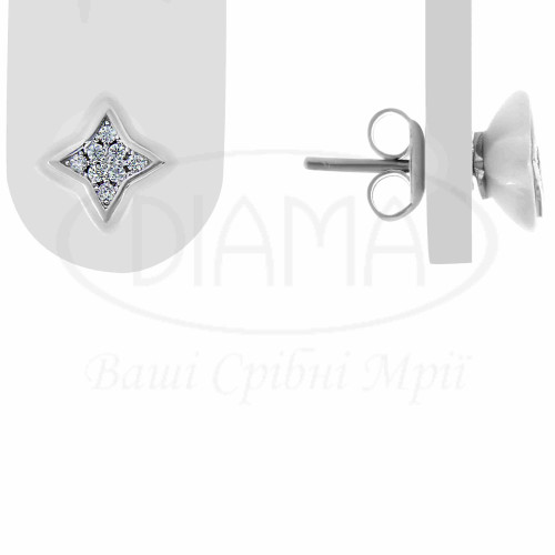 Срібні сережки з білою керамікою та білим цирконом. Срібло 925 проби, покрите родієм.