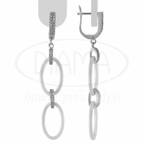 Сережки срібні з білою керамікою та білим цирконом. Срібло 925 проби, покрите родієм.