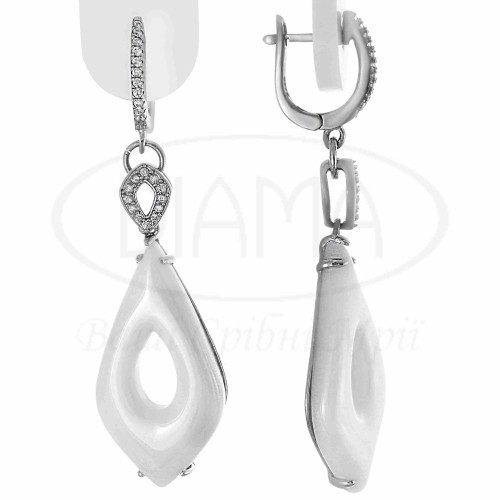 Срібні сережки 925 проби, покриті родієм. В сережках присутня ювелірна кераміка білого кольору та білий циркон.