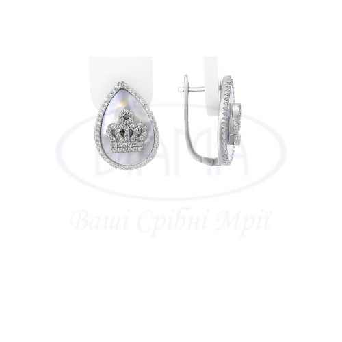 Срібні сережки з білим перламутром та білим цирконом. Срібло 925 проби, покрите родієм. Комплект складається з каблучки та сережок.