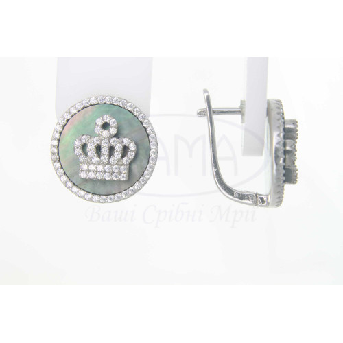 Срібні сережки з чорним перламутром та білим цирконом. Срібло 925 проби, покрите родієм. Комплект складається з каблучки та сережок.