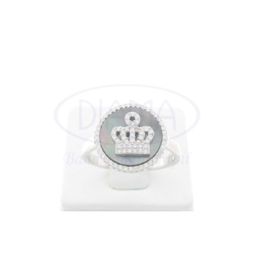 Срібна каблучка з чорним перламутром та білим цирконом. Срібло 925 проби, покрите родієм. Комплект складається з каблучки та сережок.