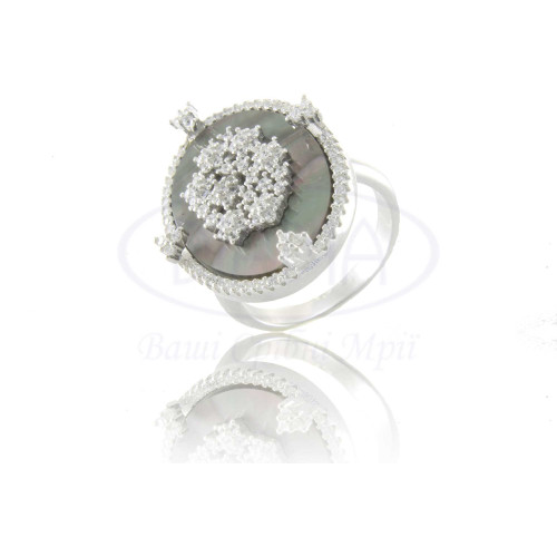 Срібна каблучка з чорним перламутром та білим цирконієм. Срібло 925 проби, покрите родієм. В наборі каблучка, сережки та підвіска.