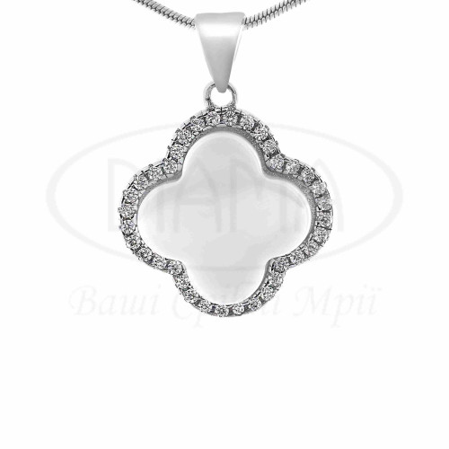 Підвіска срібна з білою керамікою та білим цирконом у формі "Клевер". Срібло 925 проби, покрите родієм. В комплекті також є каблучка та сережки.