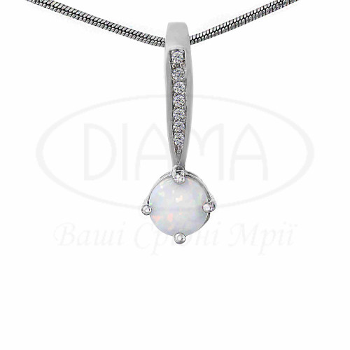 Підвіска срібна з білим Опалом та білим цирконом. Срібло 925 проби, покрите родієм. Комплект складається з каблучки, підвіски та сережок.
