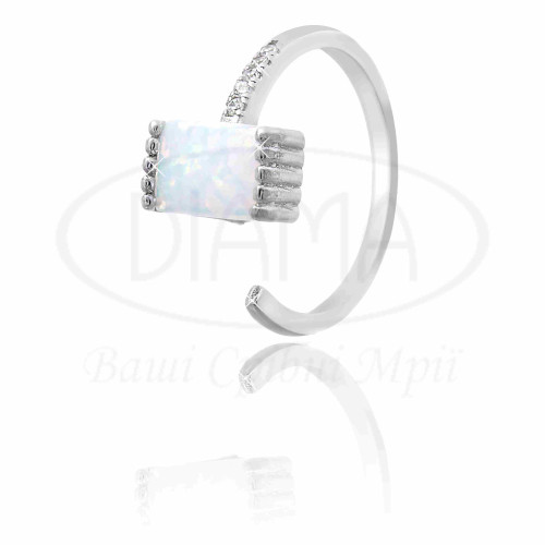 Каблучка срібна з білим прямокутним опалом та цирконом. Срібло 925 проби, покрите родієм. В наборі присутні Каблучка, сережки та підвіска.