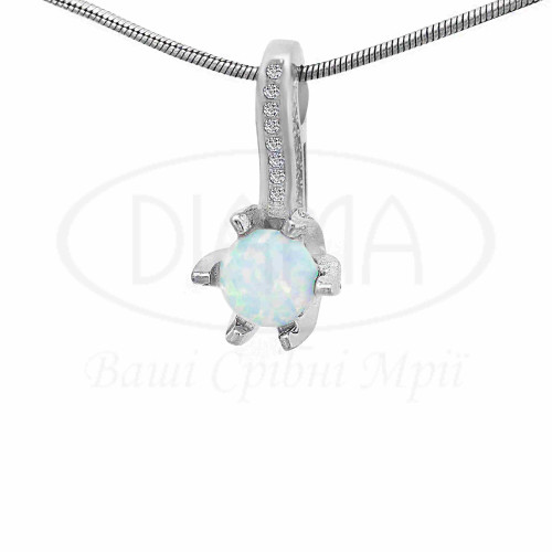 Підвіска срібна з білим круглим опалом та білим цирконом. Срібло 925 проби, покрите родієм. В наборі присутні Каблучка, сережки та підвіска.