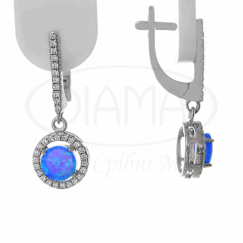 Сережки срібні з синім опалом та білим цирконом. Срібло 925 проби, покрите родієм. До комплекту входить каблучка, підвіска та сережки.
