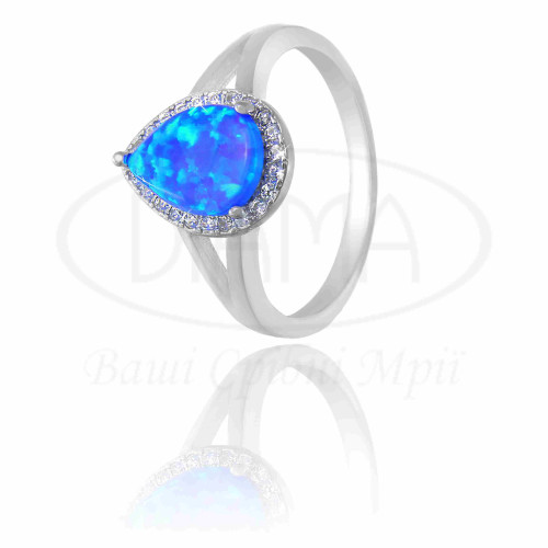 Срібна каблучка з синім Опалом та білим цирконом. Срібло 925 проби, покрите родієм. В наборі присутні каблучка, підвіска та сережки.
