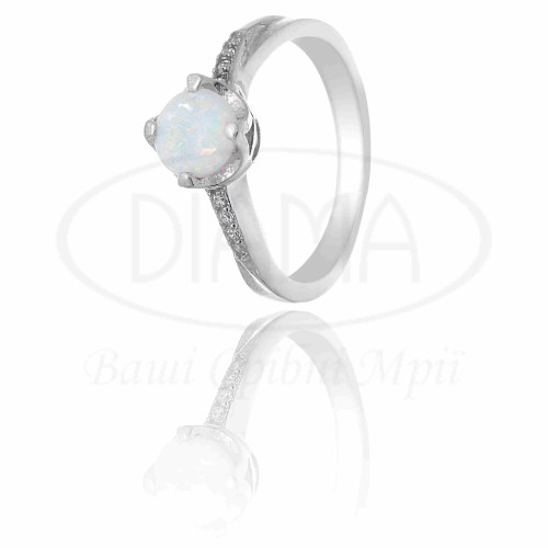 Срібна каблучка з білим Опалом та білим цирконом. Срібло 925 проби, покрите родієм. В наборі присутні каблучка, сережки та підвіска.