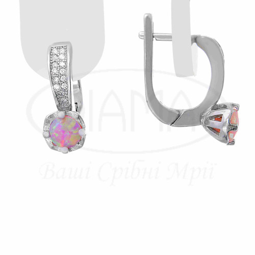 Сережки срібні з рожевим Опалом та білим цирконом. Срібло 925 проби, покрите родієм. В наборі присутні каблучка, сережки та підвіска.